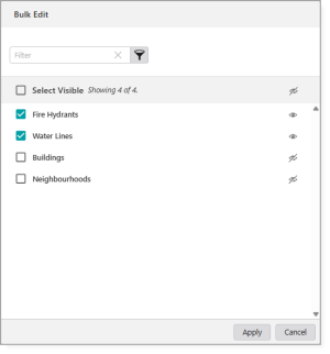 You can configure the maximum number of search results to display from each feature source (for example, layer, sublayer, table, geocoder), and the number of suggestions to display based on the user's input. To include a specific layer in the search, enable the Included option in Layer List > Layer Extensions).