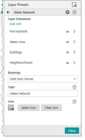 In the Custom Basemap panel, in the Base Layers section, click the name of the base layer.