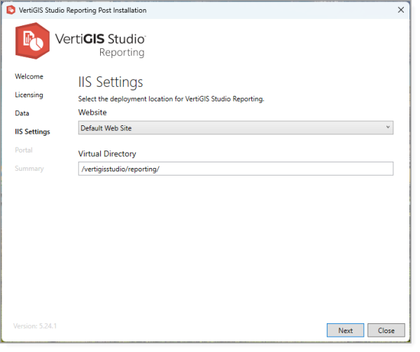 By default, VertiGIS Studio Reporting uses /vertigisstudio/reporting as the virtual directory.