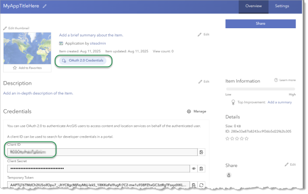 In different versions of Esri software, the terms App ID and Client ID, as well as App Secret and Client Secret, are used interchangeably.